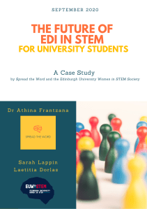 Spread the Word‘s founder, Dr Athina Frantzana, and the Edinburgh University Women in STEM (EUWiSTEM) Society conducted an investigation into Science, Technology, Engineering and Mathematics (STEM) students’ experiences of Equality, Diversity and Inclusion (EDI) at the University of Edinburgh.